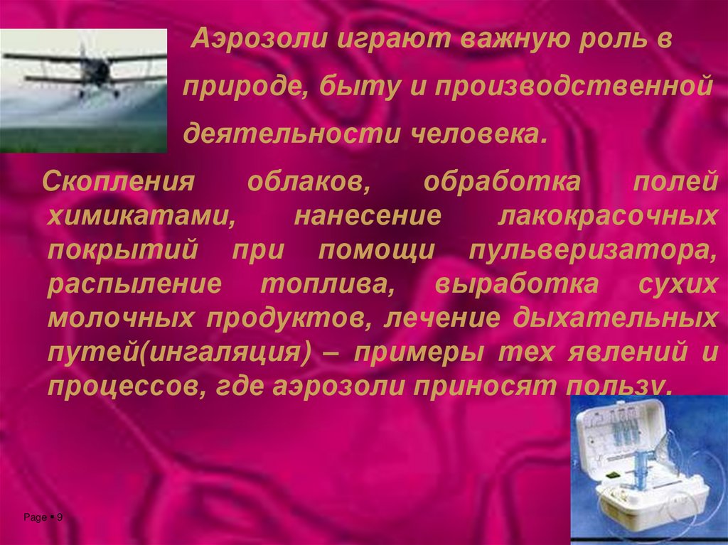 Аэрозоли играют важную роль вприроде, быту и производственной
