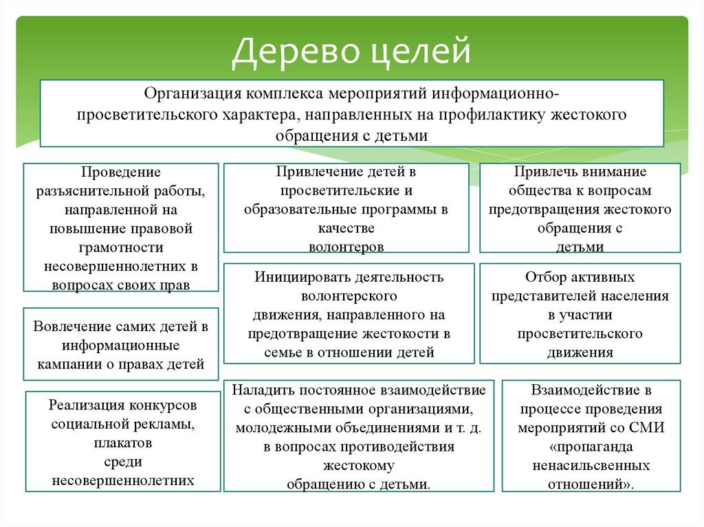 Дерево целейОрганизация комплекса мероприятий информационнопросветительского характера, направленных на профилактику жестокого