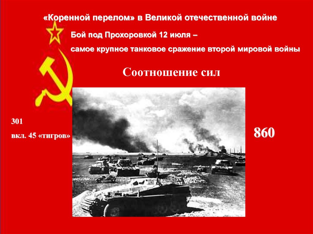 «Коренной перелом» в Великой отечественной войнеБой под Прохоровкой 12 июля –