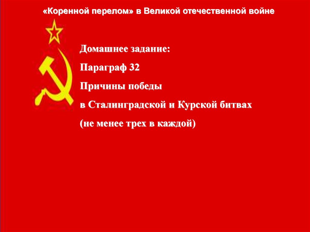 «Коренной перелом» в Великой отечественной войнеДомашнее задание: