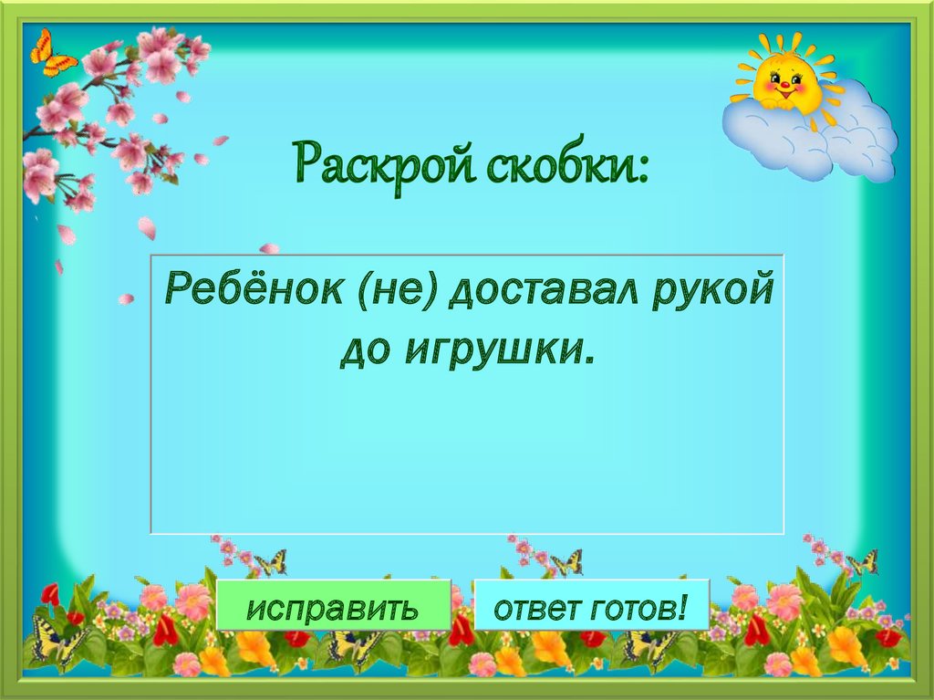 Раскрой скобки:Ребёнок (не) доставал рукой