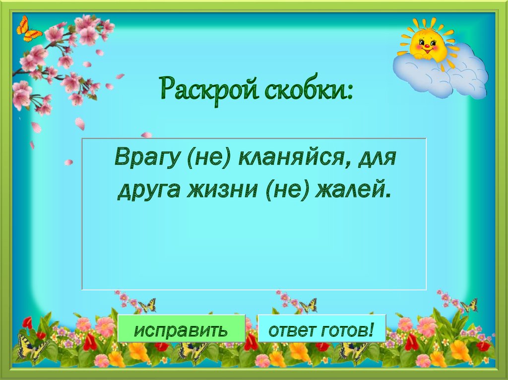 Раскрой скобки:Врагу (не) кланяйся, для