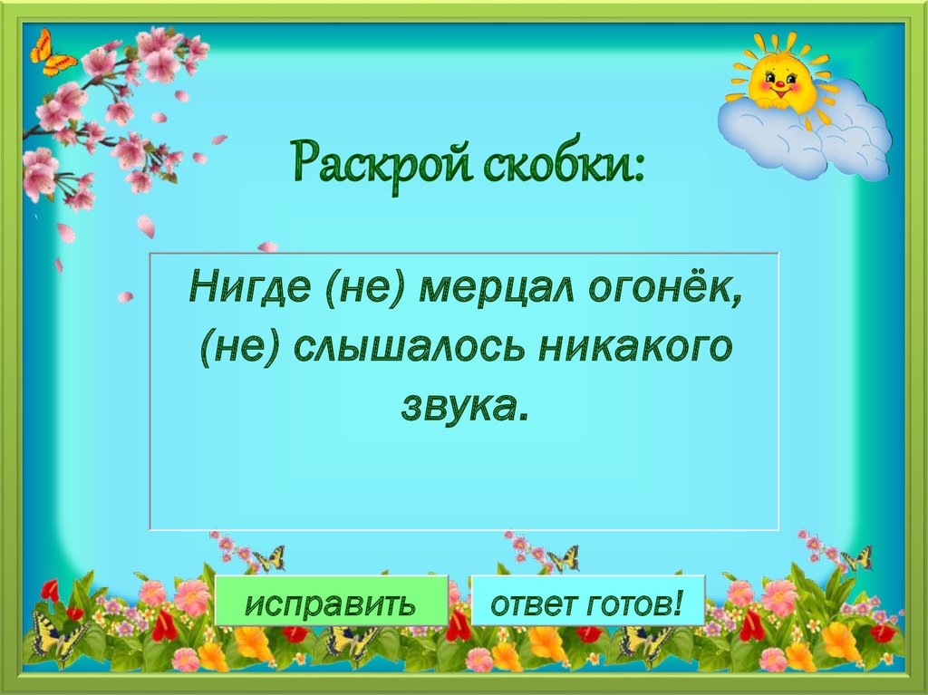 Раскрой скобки:Нигде (не) мерцал огонёк,