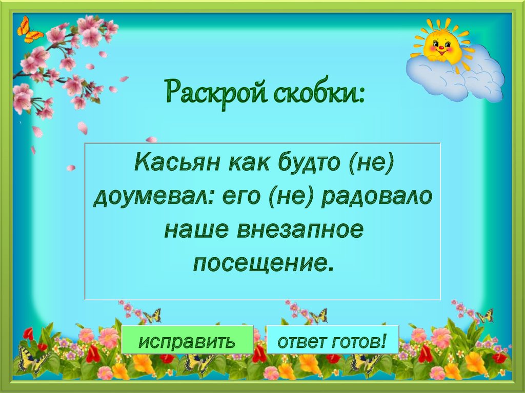 Раскрой скобки:Касьян как будто (не)