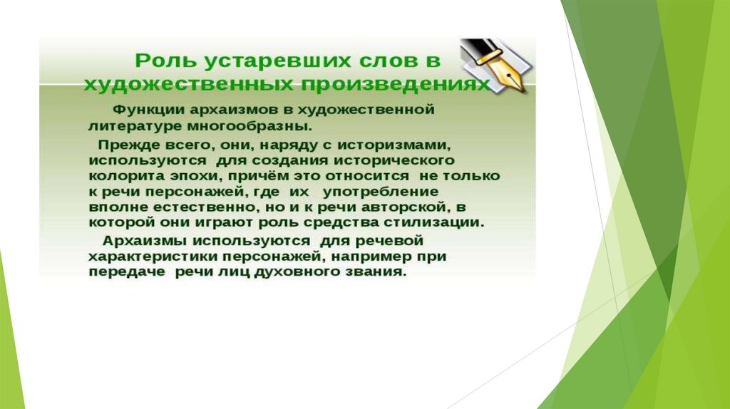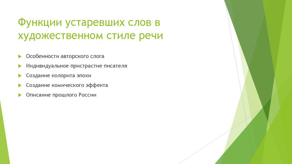 Функции устаревших слов в художественном стиле речи