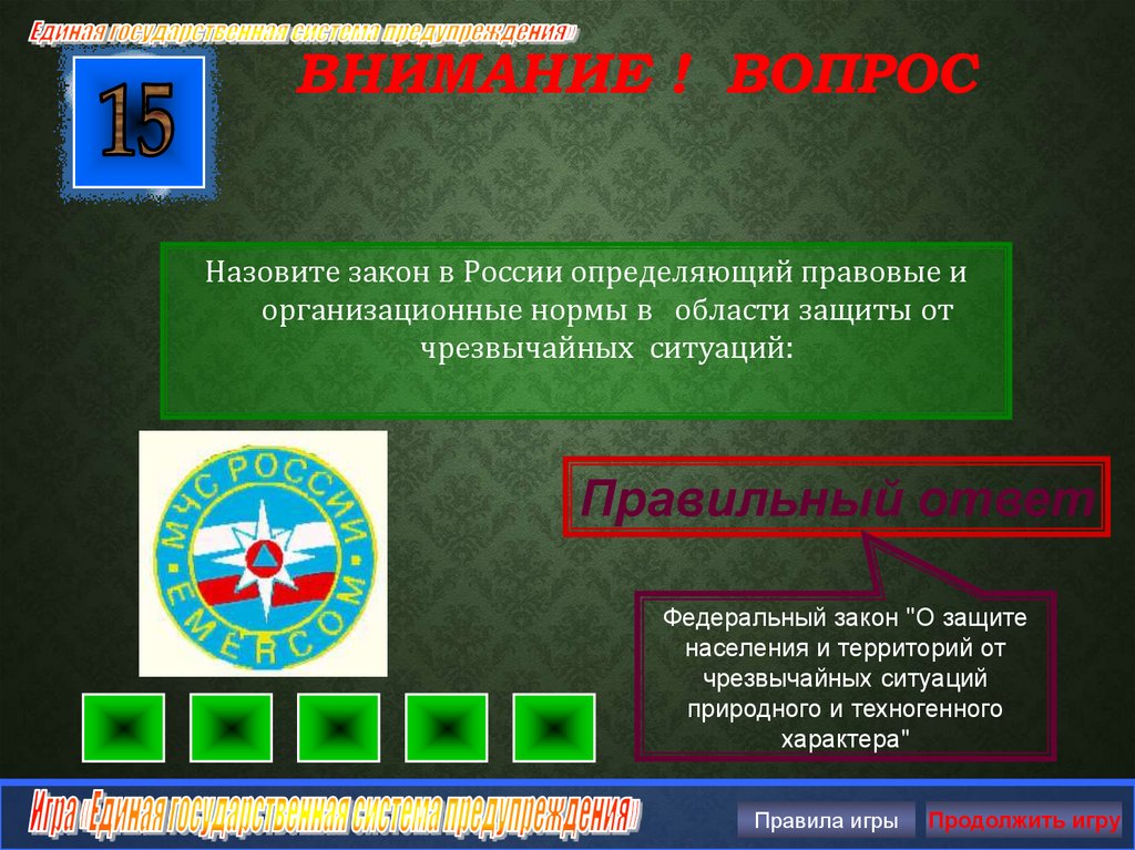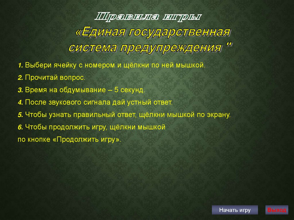 Интеллектуальная игра "Единая государственная система предупреждения"