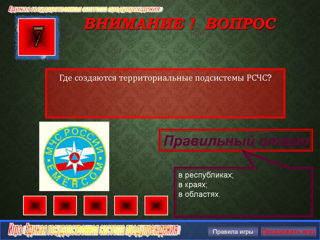 ВНИМАНИЕ ! ВОПРОСГде создаются территориальные подсистемы РСЧС?