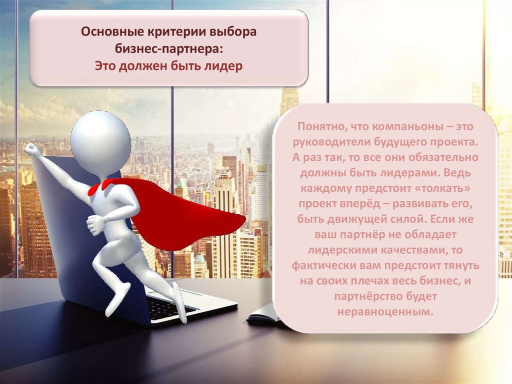 личные цели будущего бизнеспартнера совпадают с вашими,