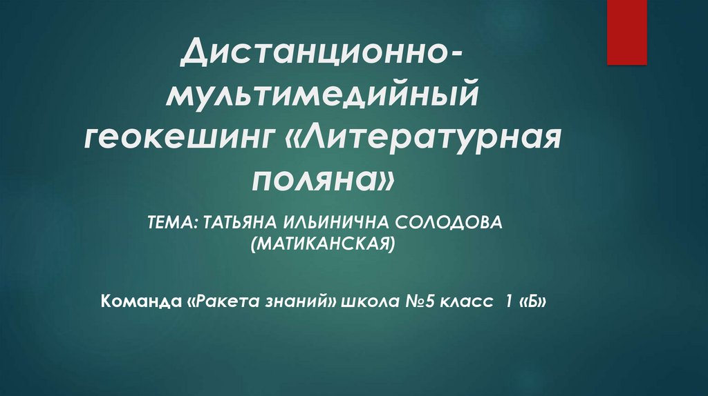 Дистанционномультимедийныйгеокешинг «Литературная