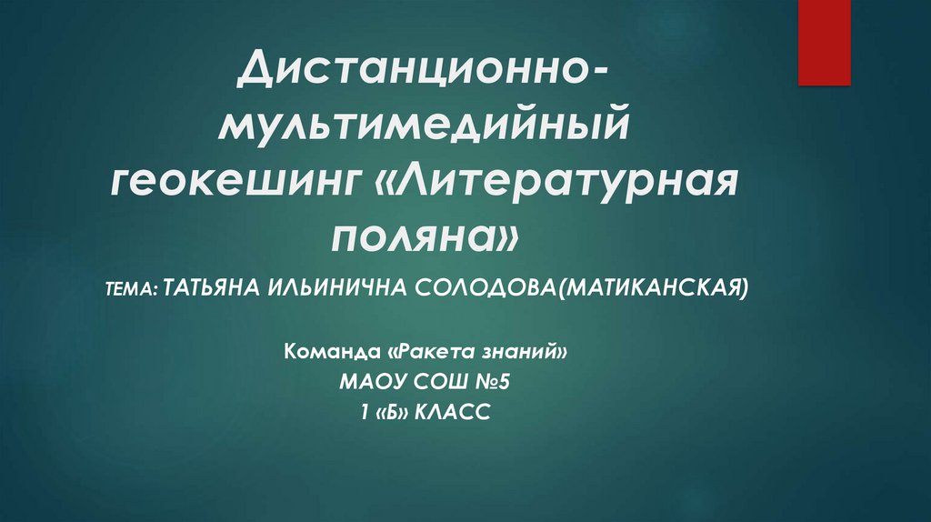 Дистанционномультимедийныйгеокешинг «Литературная