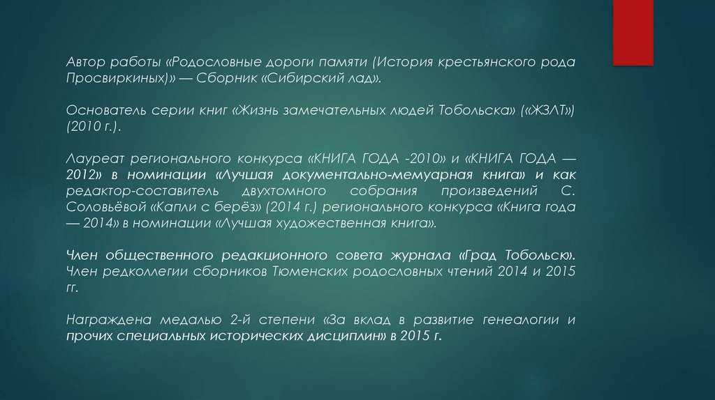 Член редколлегии сборников Тюменских родословных чтений 2014 и 2015