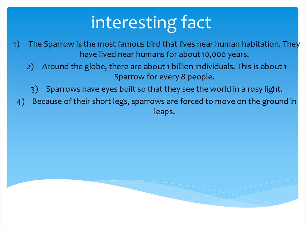 4) Because of their short legs, sparrows are forced to move on the ground in