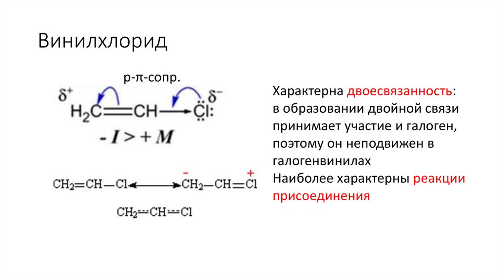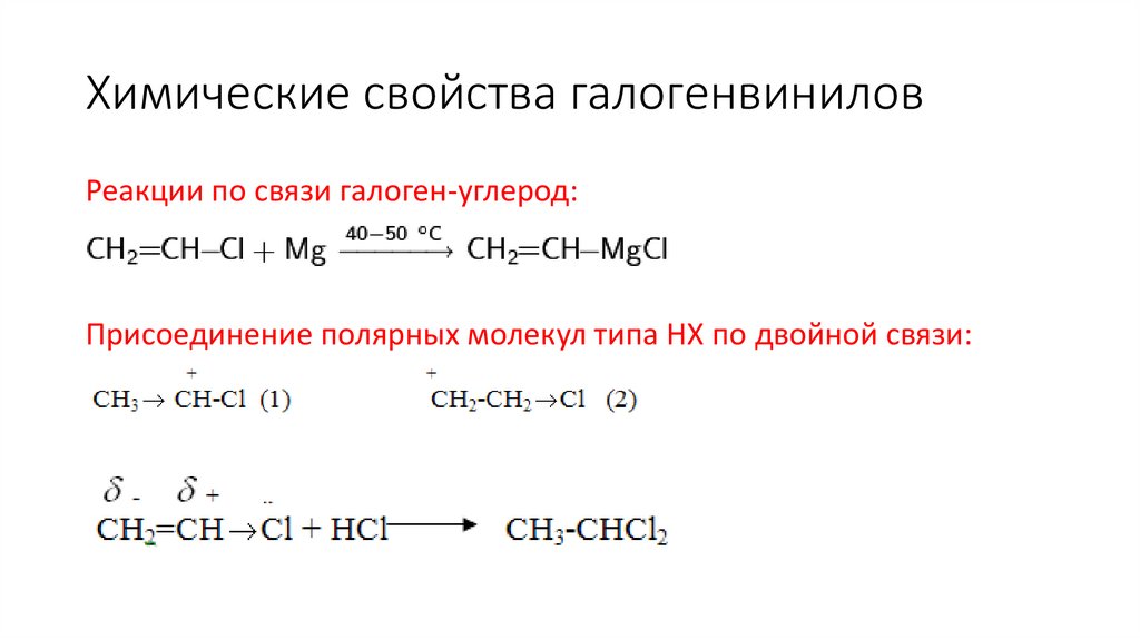 Химические свойства галогенвиниловРеакции по связи галоген-углерод: