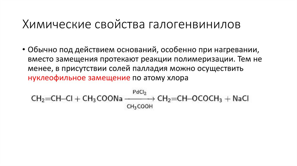 Химические свойства галогенвинилов• Обычно под действием оснований, особенно при нагревании,