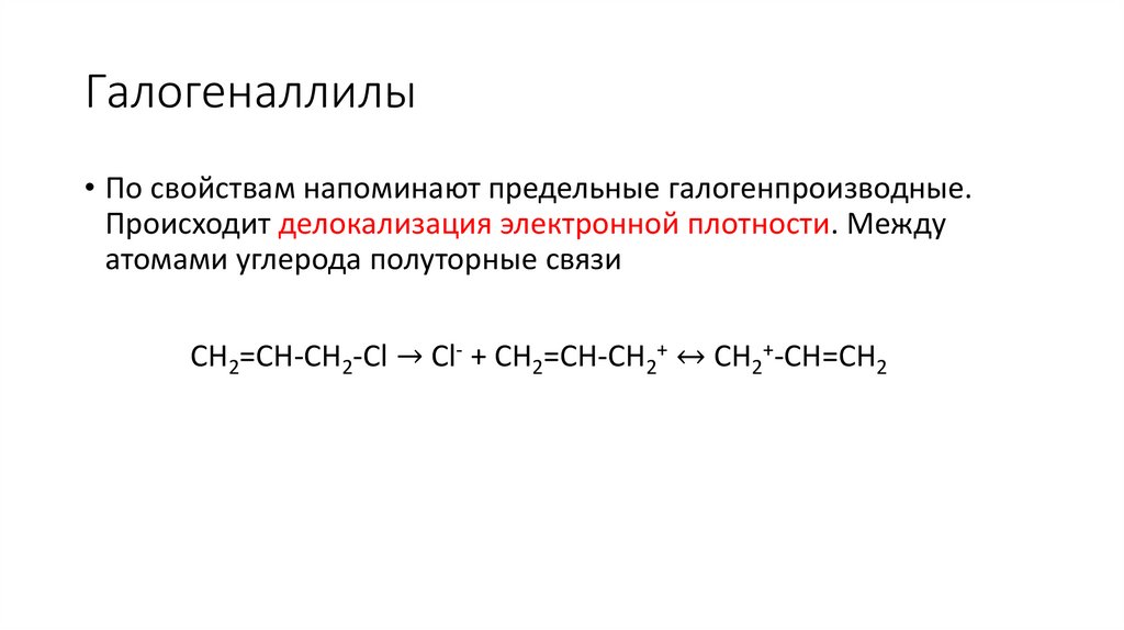 • В галогеналлилах атом галогена находится у атома углерода, с