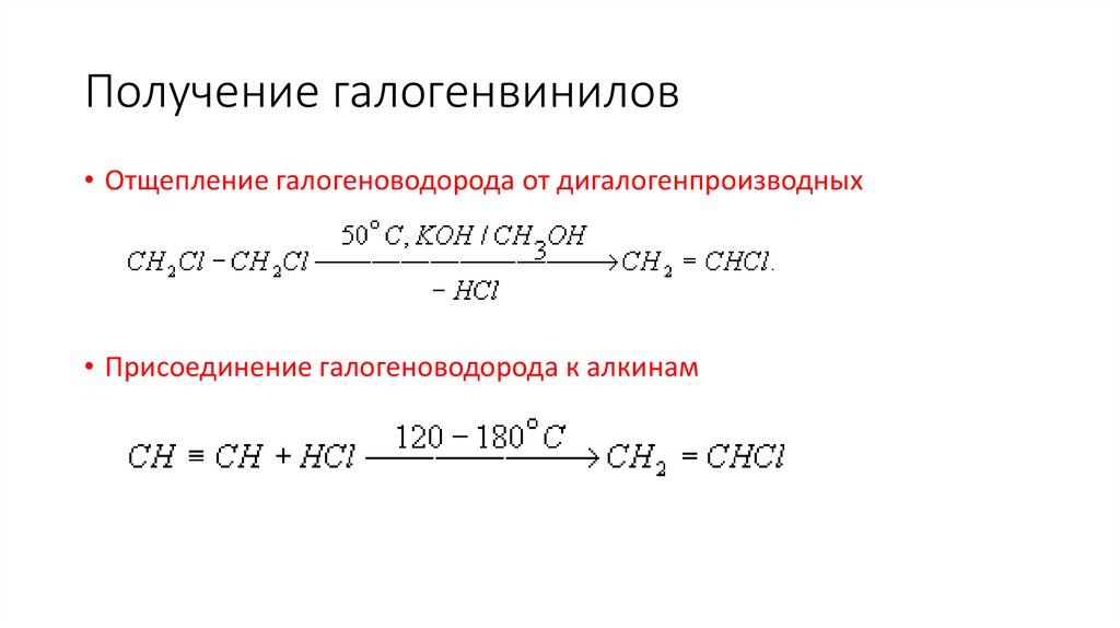 Получение галогенвинилов• Отщепление галогеноводорода от дигалогенпроизводных