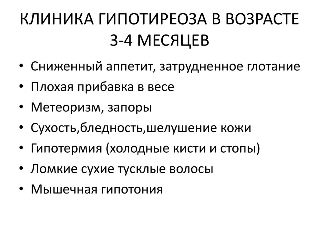 КЛИНИКА ГИПОТИРЕОЗА В ВОЗРАСТЕ3-4 МЕСЯЦЕВ