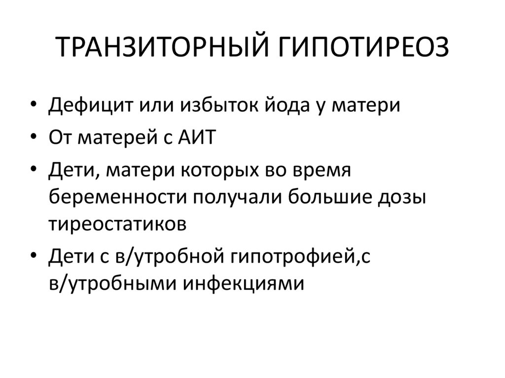 ТРАНЗИТОРНЫЙ ГИПОТИРЕОЗ• Дефицит или избыток йода у матери