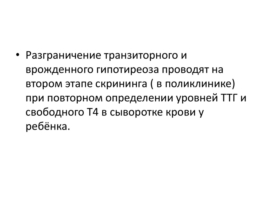 • Разграничение транзиторного иврожденного гипотиреоза проводят на