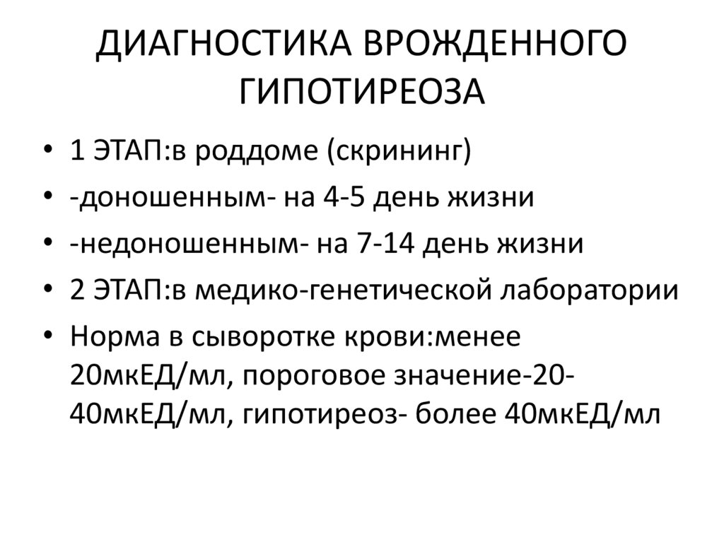 ДИАГНОСТИКА ВРОЖДЕННОГОГИПОТИРЕОЗА