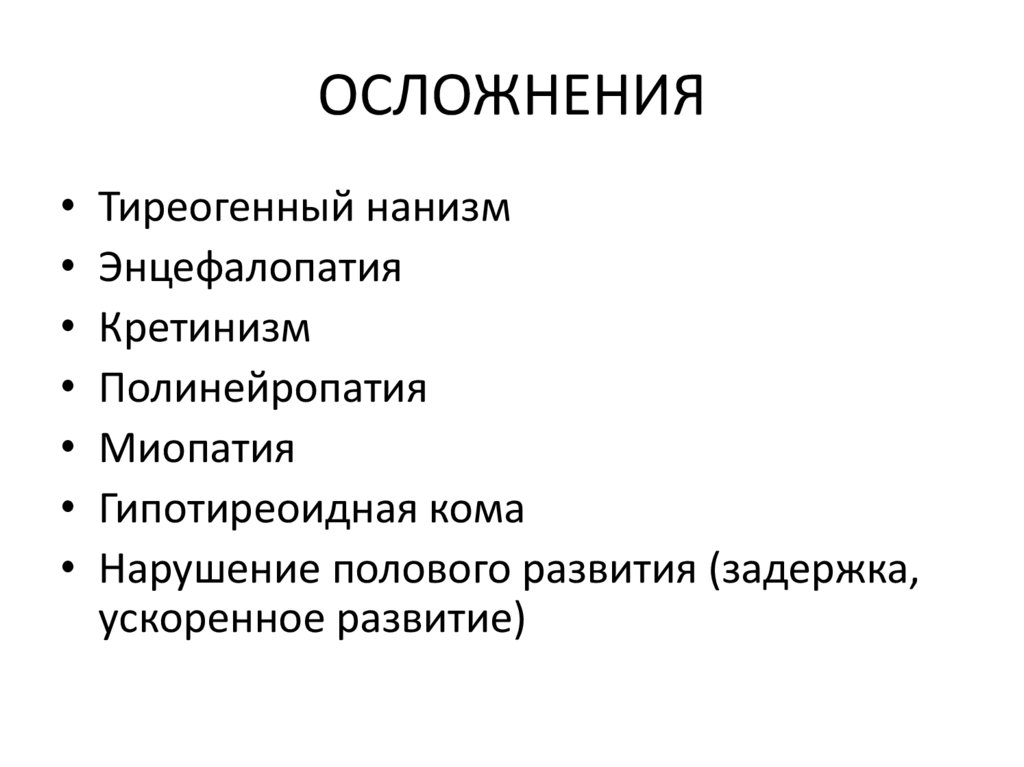 ОСЛОЖНЕНИЯТиреогенный нанизм