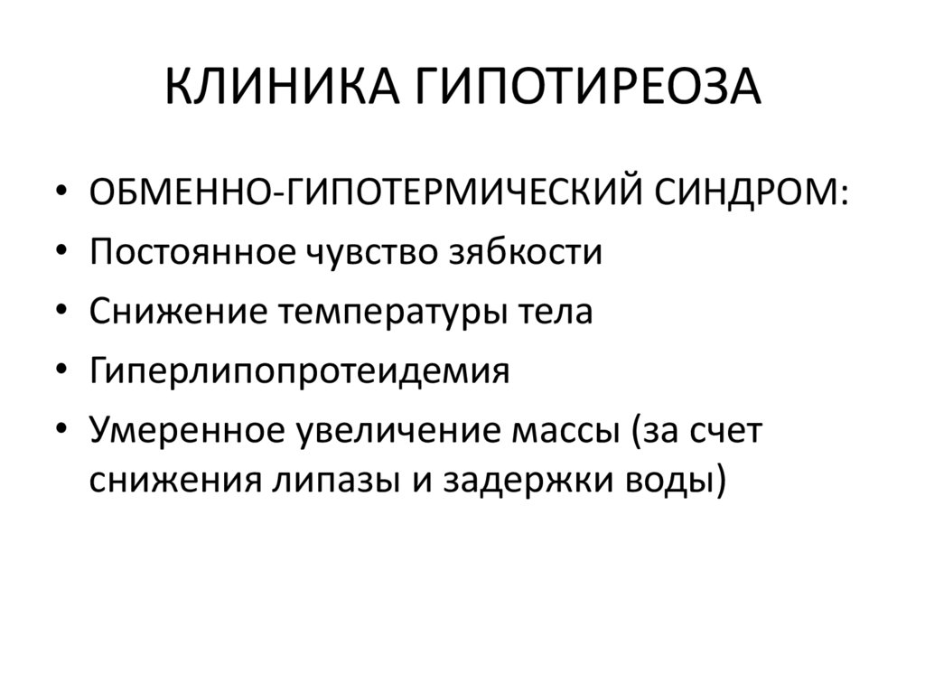 КЛИНИКА ГИПОТИРЕОЗАОБМЕННО-ГИПОТЕРМИЧЕСКИЙ СИНДРОМ: