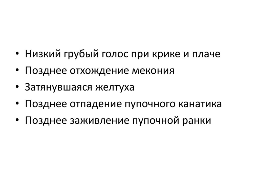 • Признаки незрелости при доношенной