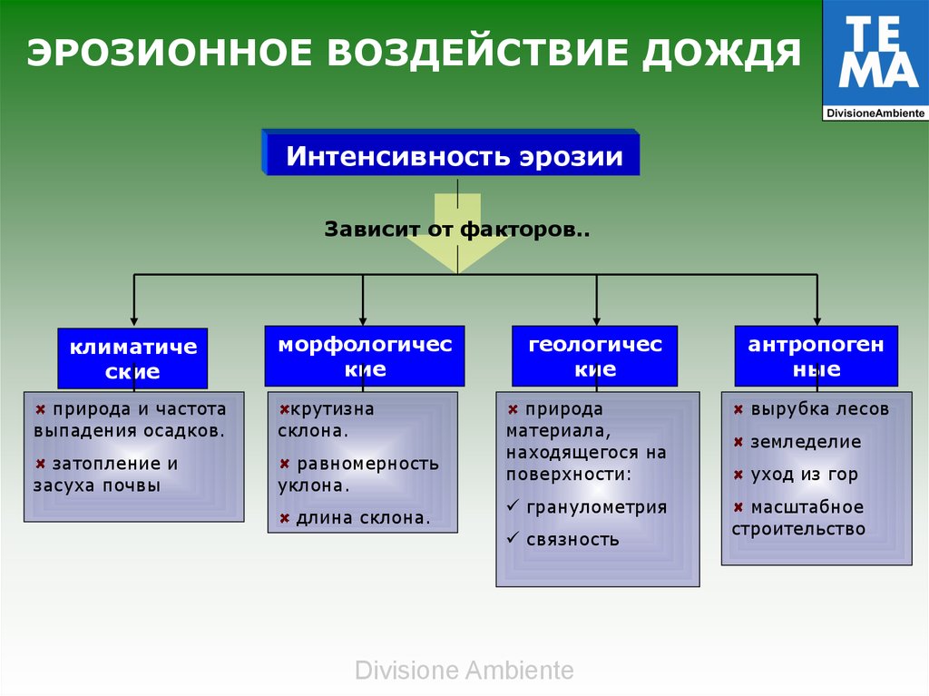 ЭРОЗИОННОЕ ВОЗДЕЙСТВИЕ ДОЖДЯИнтенсивность эрозии