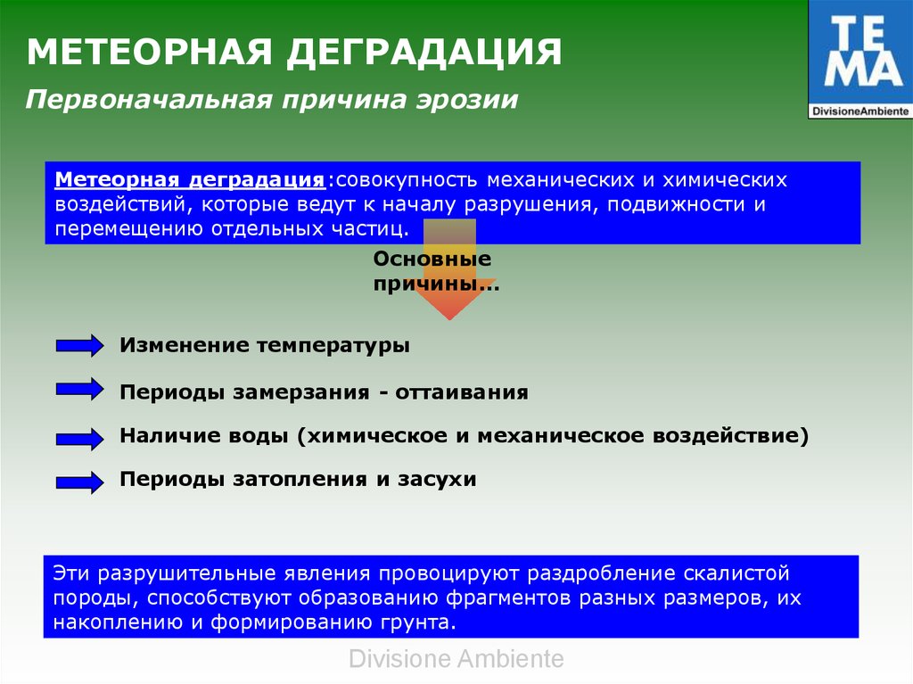 МЕТЕОРНАЯ ДЕГРАДАЦИЯПервоначальная причина эрозии