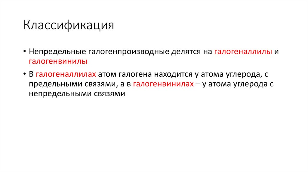 Классификация• Непредельные галогенпроизводные делятся на галогеналлилы и