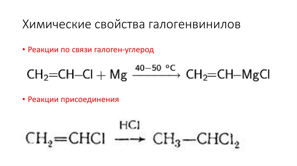 Химические свойства галогенвинилов• Реакции по связи галоген-углерод