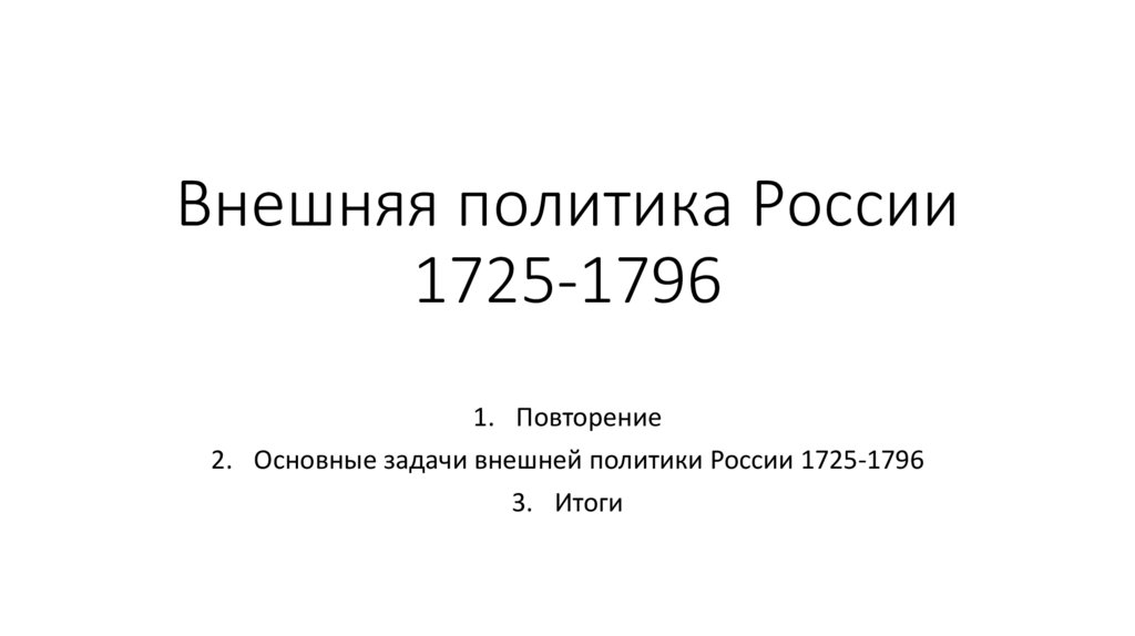 2. Основные задачи внешней политики России 1725-1796