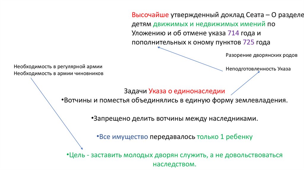 Задачи Указа о единонаследии