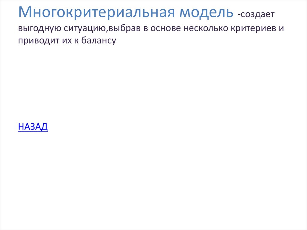 Многокритериальная модель -создаетвыгодную ситуацию,выбрав в основе несколько критериев и