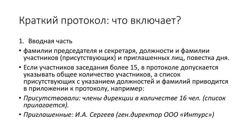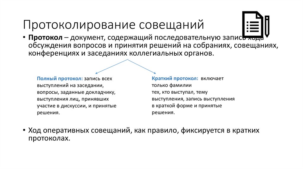 Протоколирование совещаний• Протокол – документ, содержащий последовательную запись хода