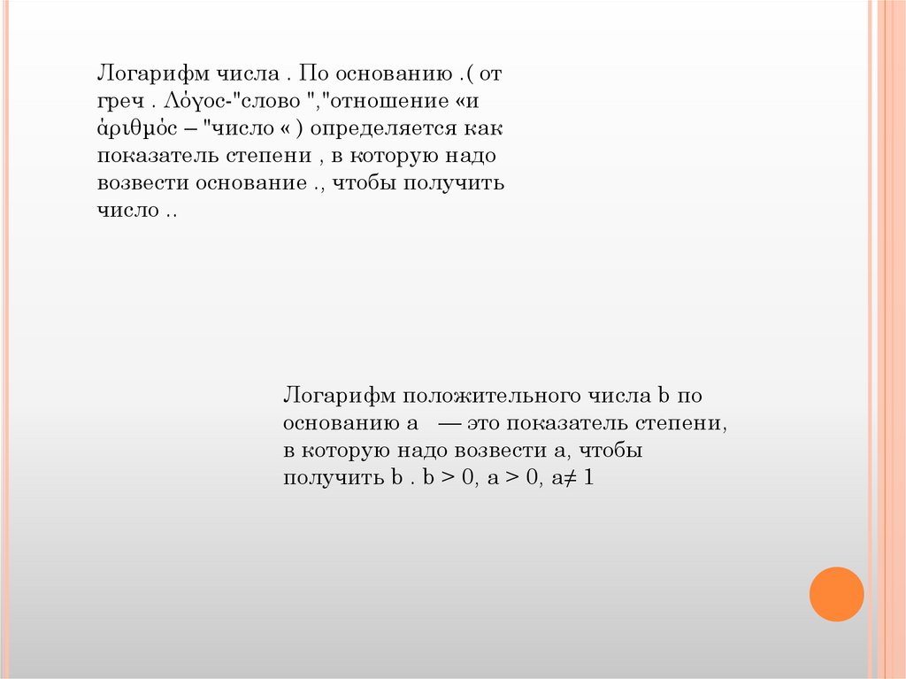 Понятие логарифма. Логарифм и его свойства