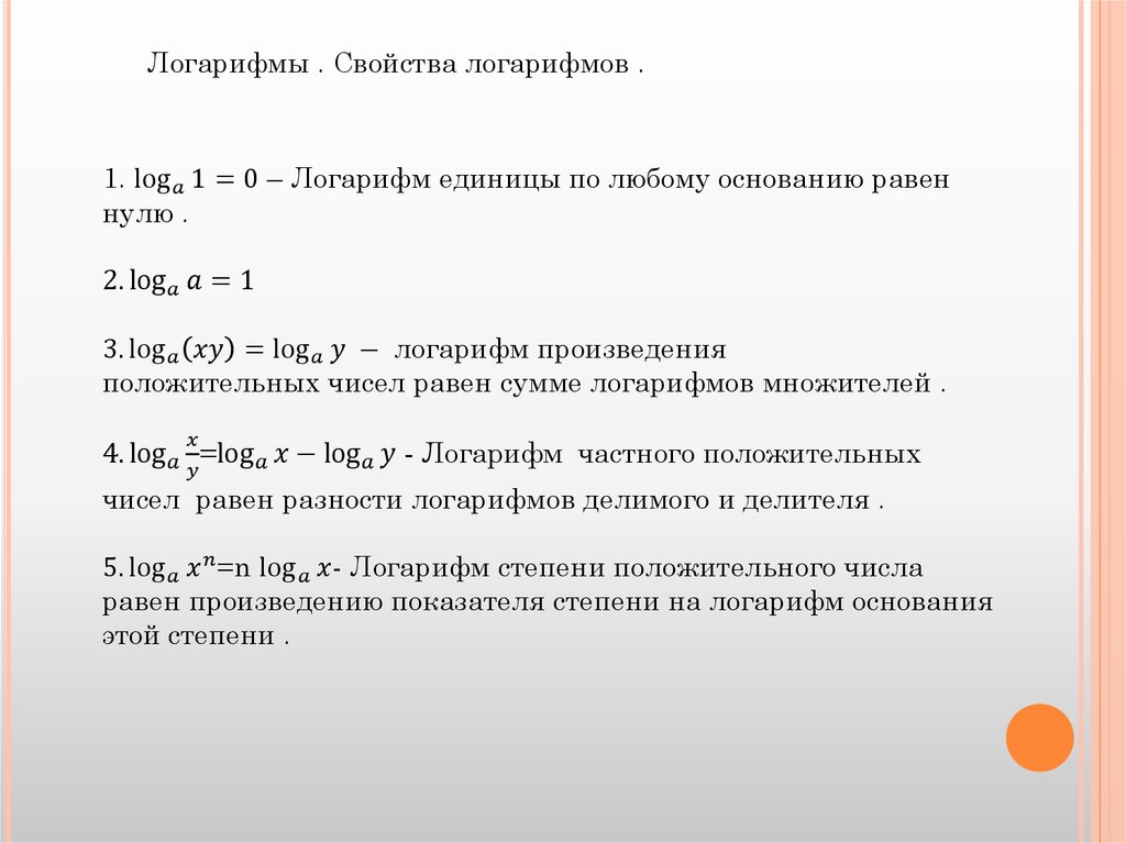 Логарифмы. Свойства логарифмов