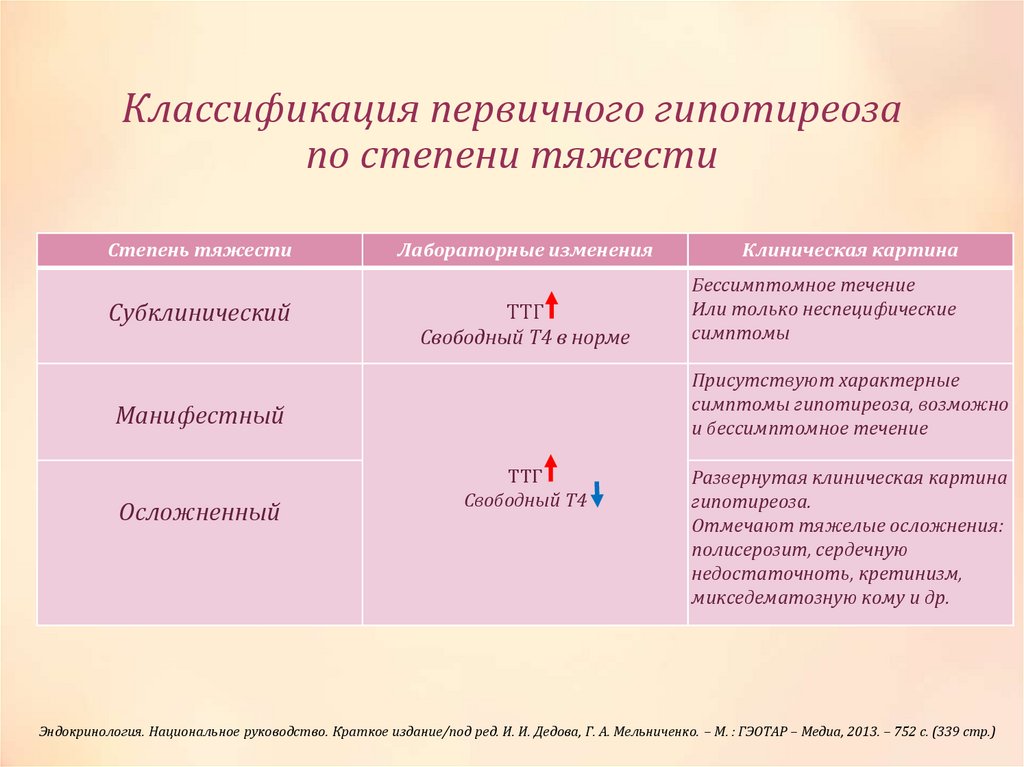 Гипотиреоз. Клиническая классификация гипотиреоза
