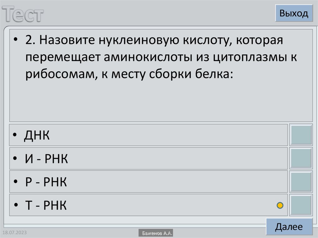 Выход• 2. Назовите нуклеиновую кислоту, которая
