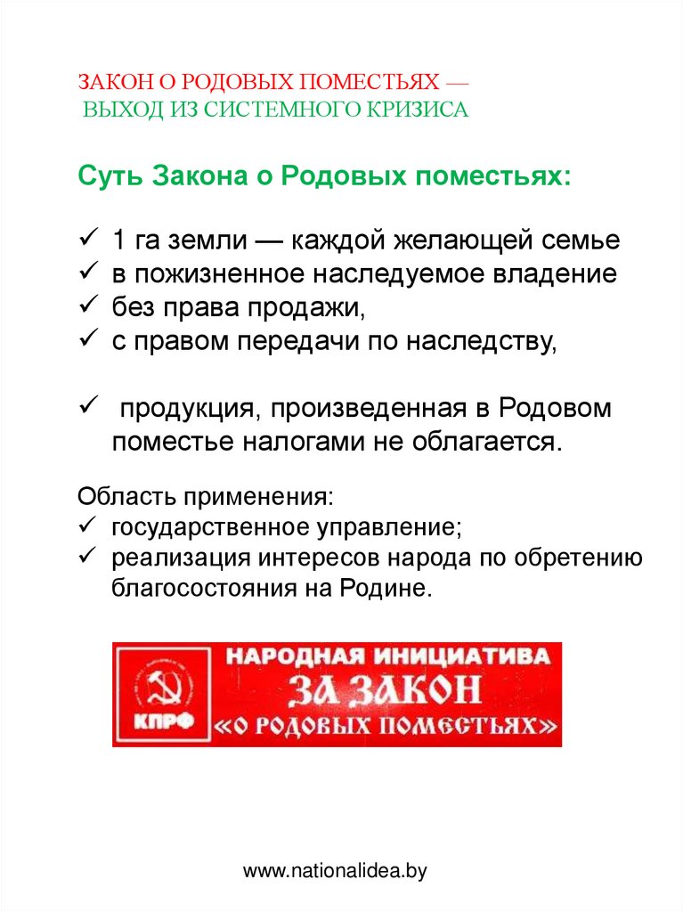 ЗАКОН О РОДОВЫХ ПОМЕСТЬЯХ —ВЫХОД ИЗ СИСТЕМНОГО КРИЗИСА