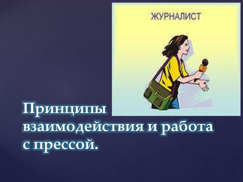 Принципы взаимодействия с прессой:● Во взаимодействии