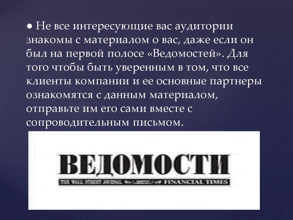 ● Направляйте пресс-релизыконкретному человеку.