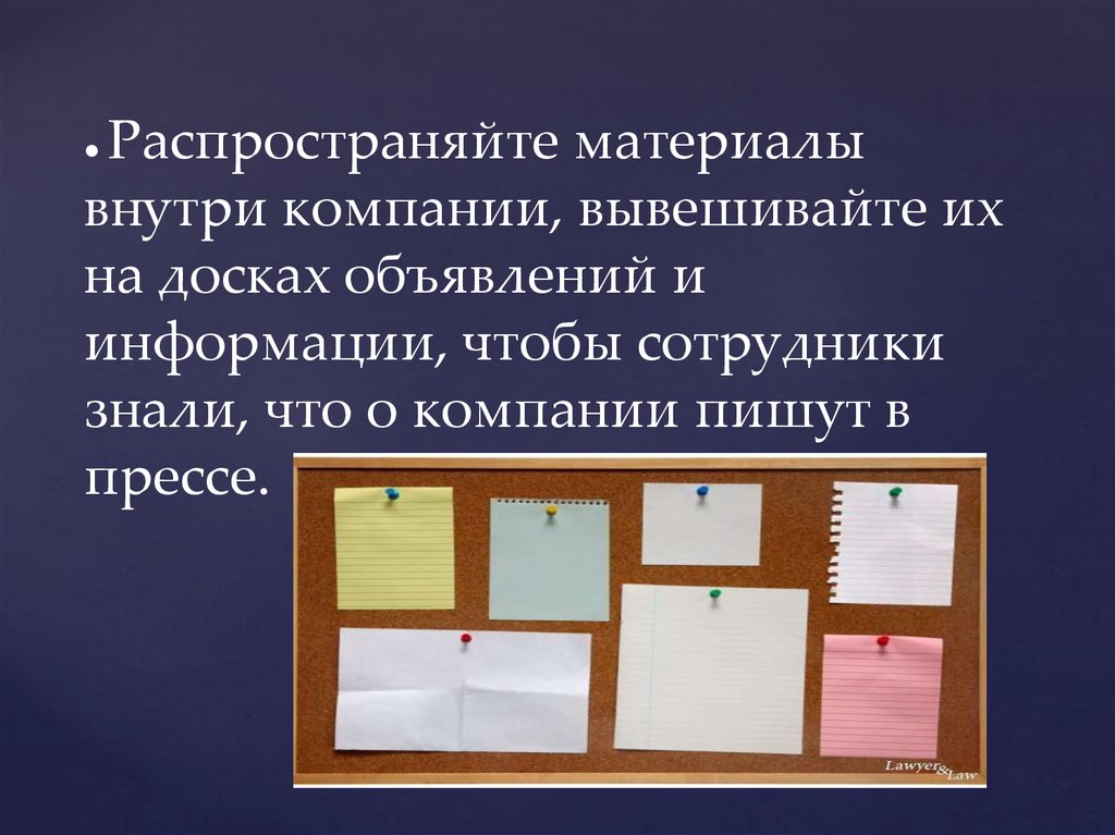 Распространяйте материалывнутри компании, вывешивайте их