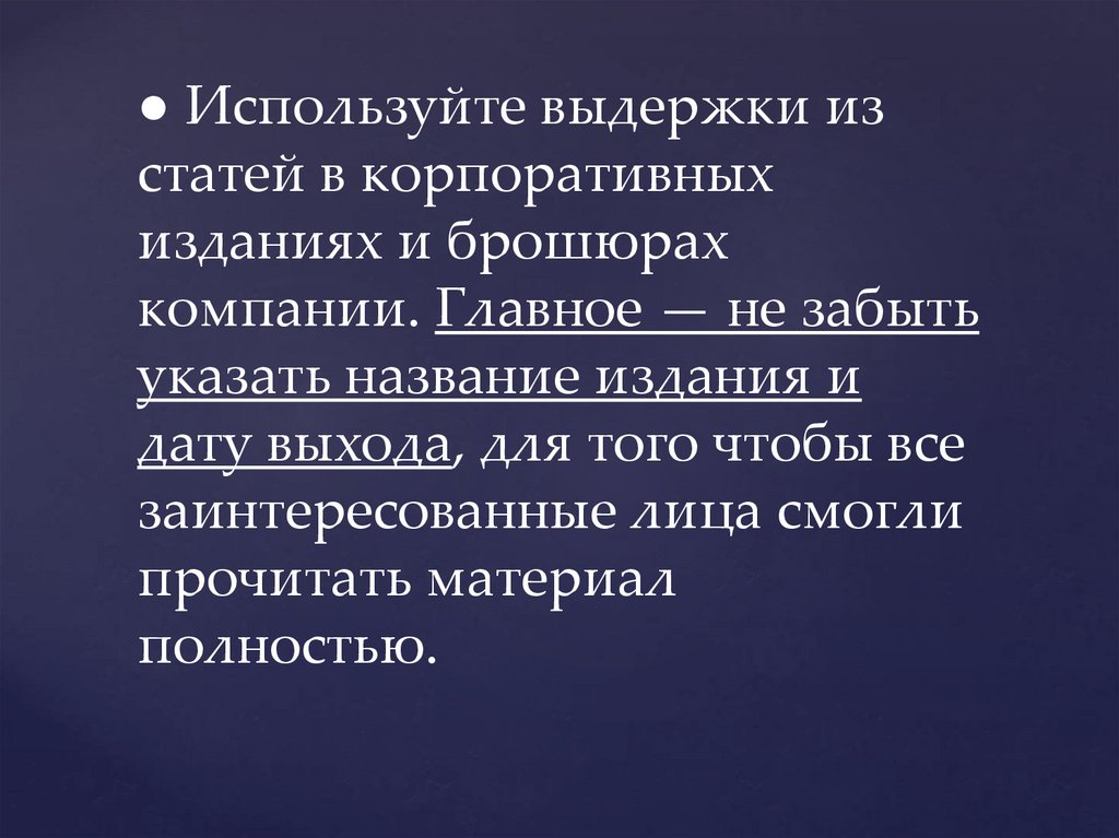 ● Используйте выдержки изстатей в корпоративных