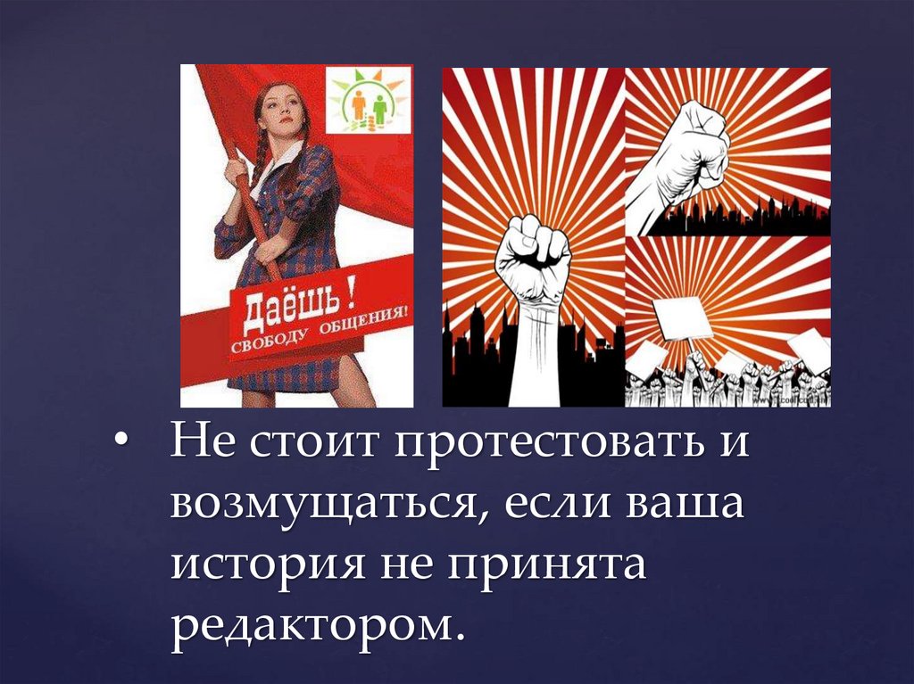 • Не стоит протестовать ивозмущаться, если ваша