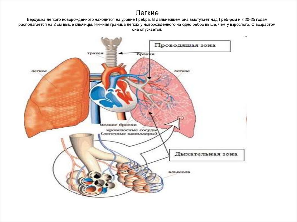 располагается на 2 см выше ключицы. Нижняя граница легких у новорожденного на одно ребро выше, чем у взрослого. С возрастом