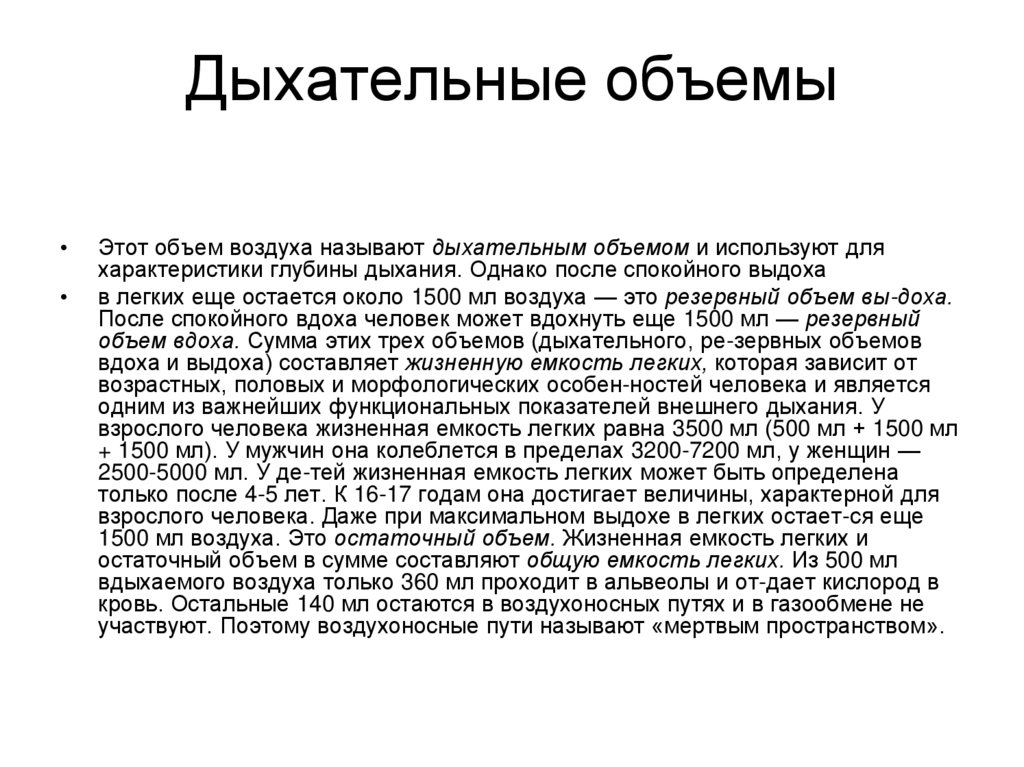Дыхательные объемыЭтот объем воздуха называют дыхательным объемом и используют для
