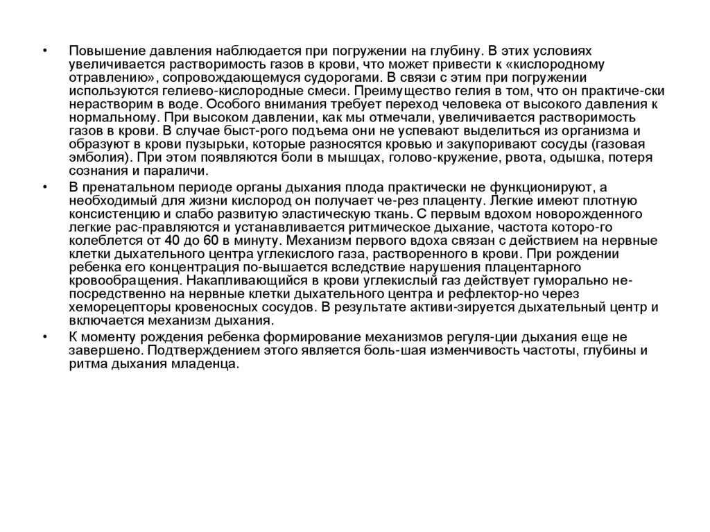 К моменту рождения ребенка формирование механизмов регуля-ции дыхания еще не