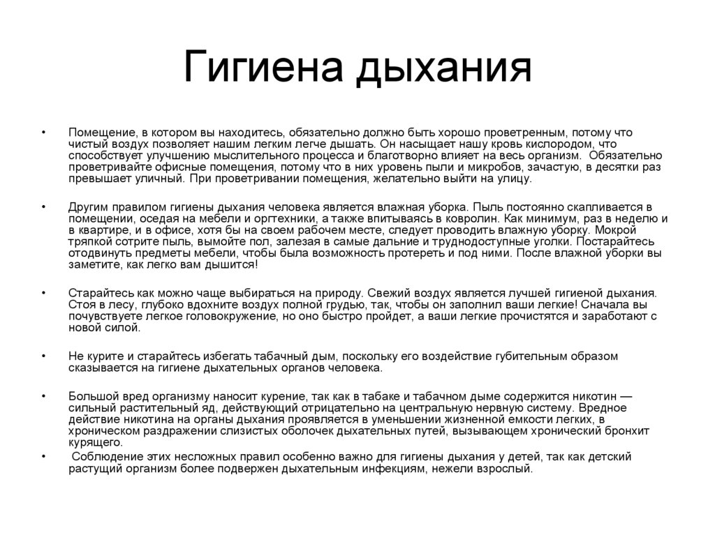 Гигиена дыханияПомещение, в котором вы находитесь, обязательно должно быть хорошо проветренным, потому что
