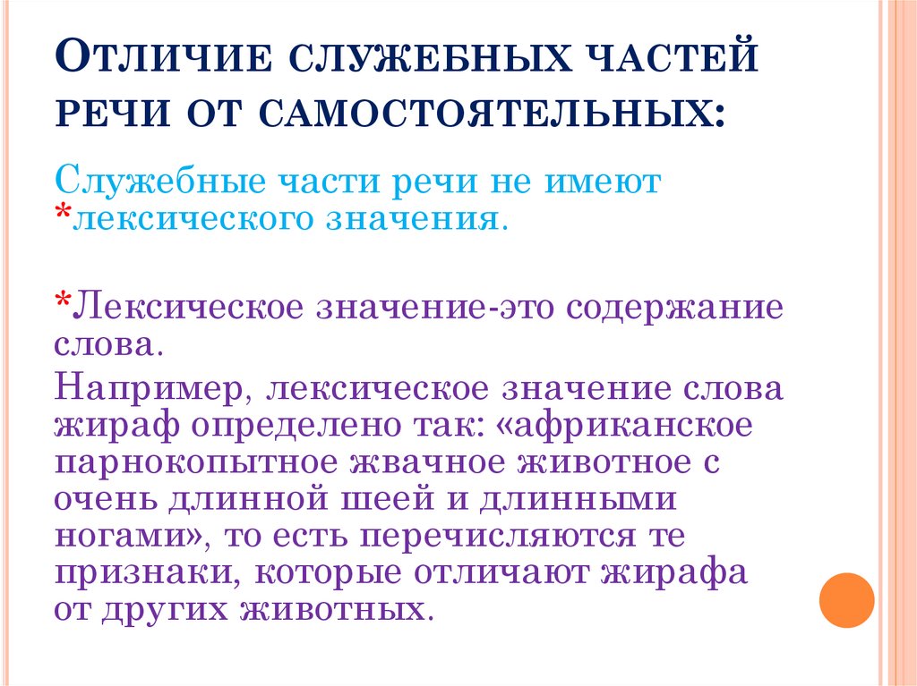 ОТЛИЧИЕ СЛУЖЕБНЫХ ЧАСТЕЙРЕЧИ ОТ САМОСТОЯТЕЛЬНЫХ: